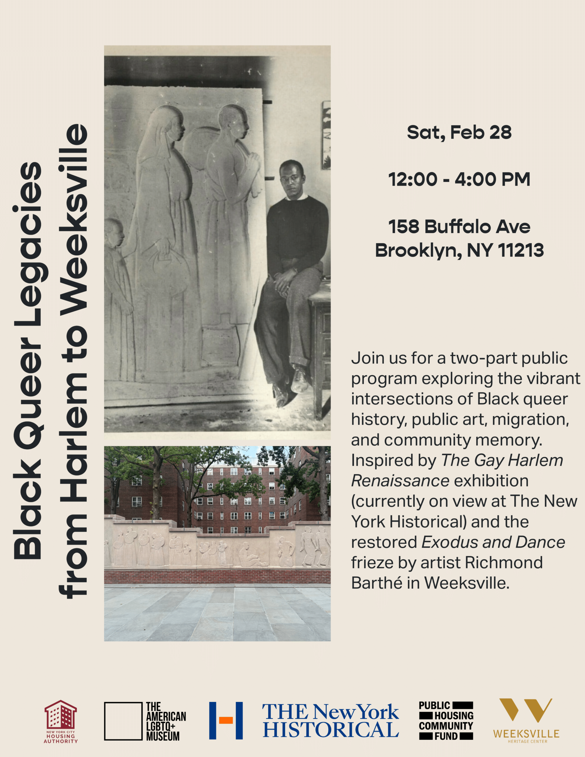 Join us on Saturday, February 28th for a two-part public program exploring the vibrant intersections of Black queer history, public art, migration, and community memory.